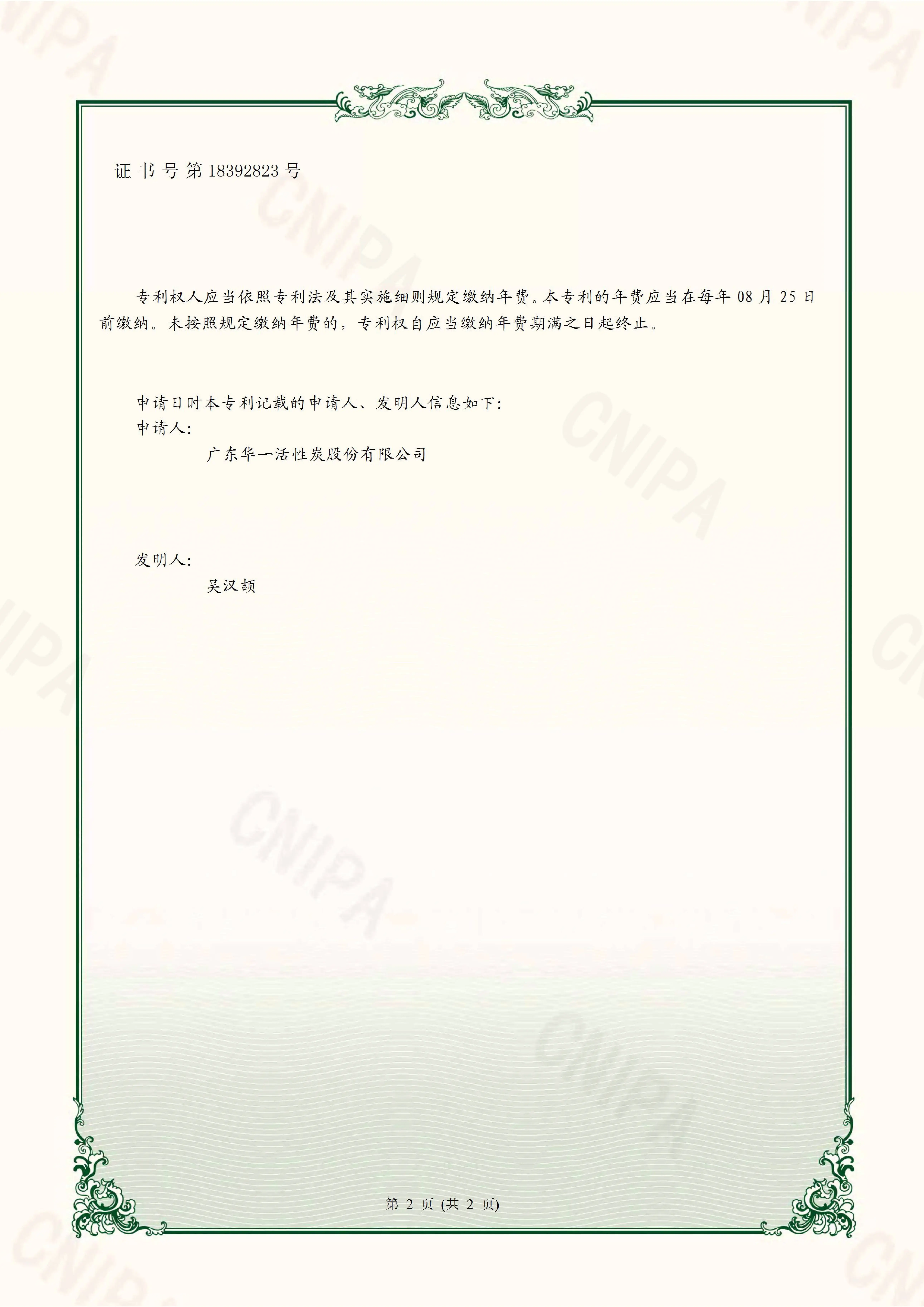 On January 31, 2023, good news came from Guangdong Yicarb Activated Carbon Co., Ltd. (hereinafter referred to as "Yicarb Stock"). The company successfully obtained the patent certificate for "An Activated Carbon Production Equipment" issued by the National Intellectual Property Administration. The acquisition of this patent marks a key breakthrough for Yicarb Stock in the research and development field of activated carbon production equipment, demonstrating the company's strong capabilities in technological innovation.